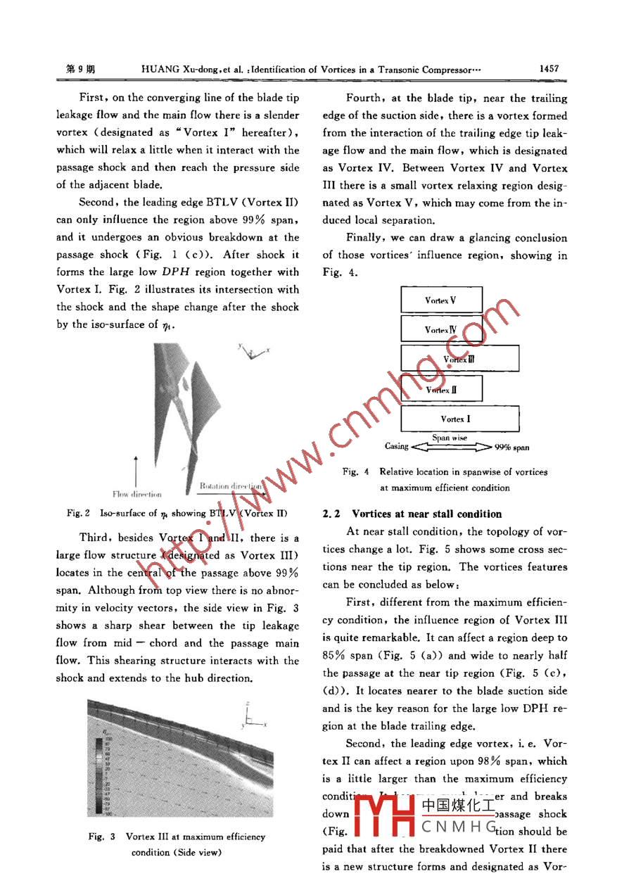 Identification of vortices in a transonic compressor flow and the stall process