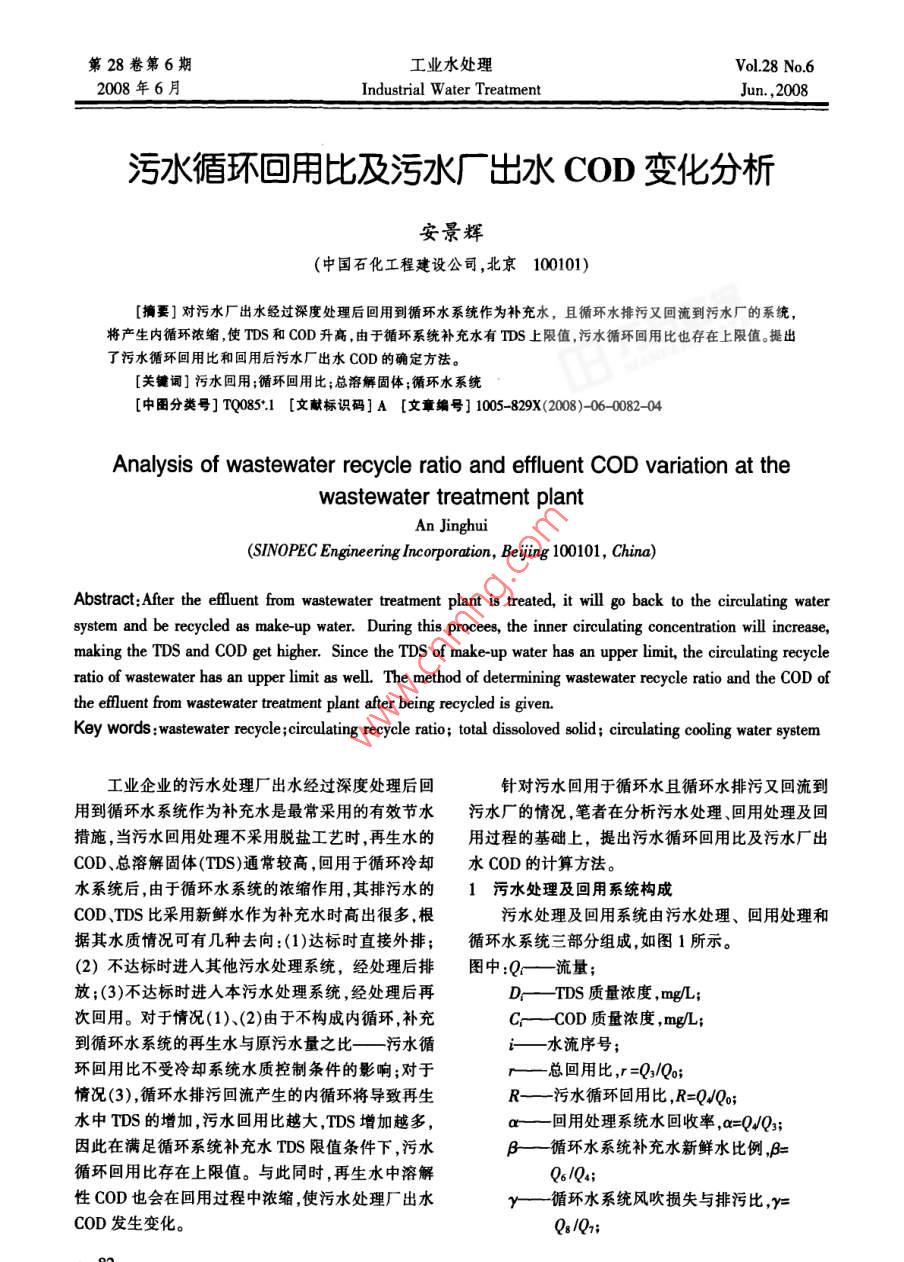 - 期刊名字:工业水处理