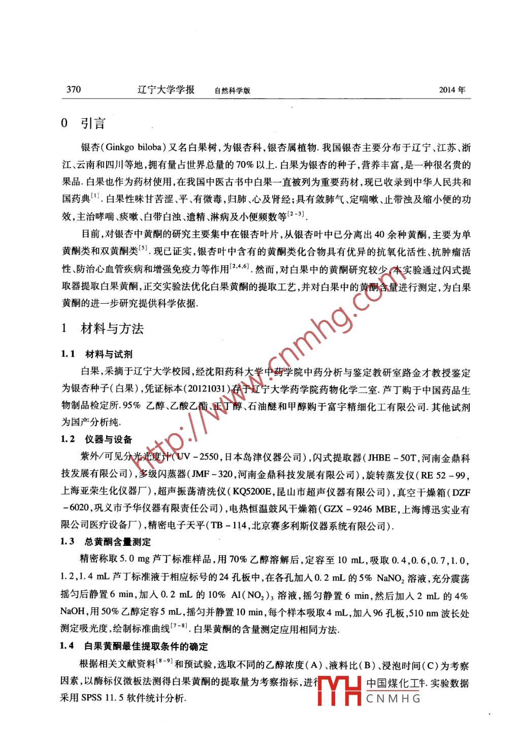 白果黄酮的提取工艺研究