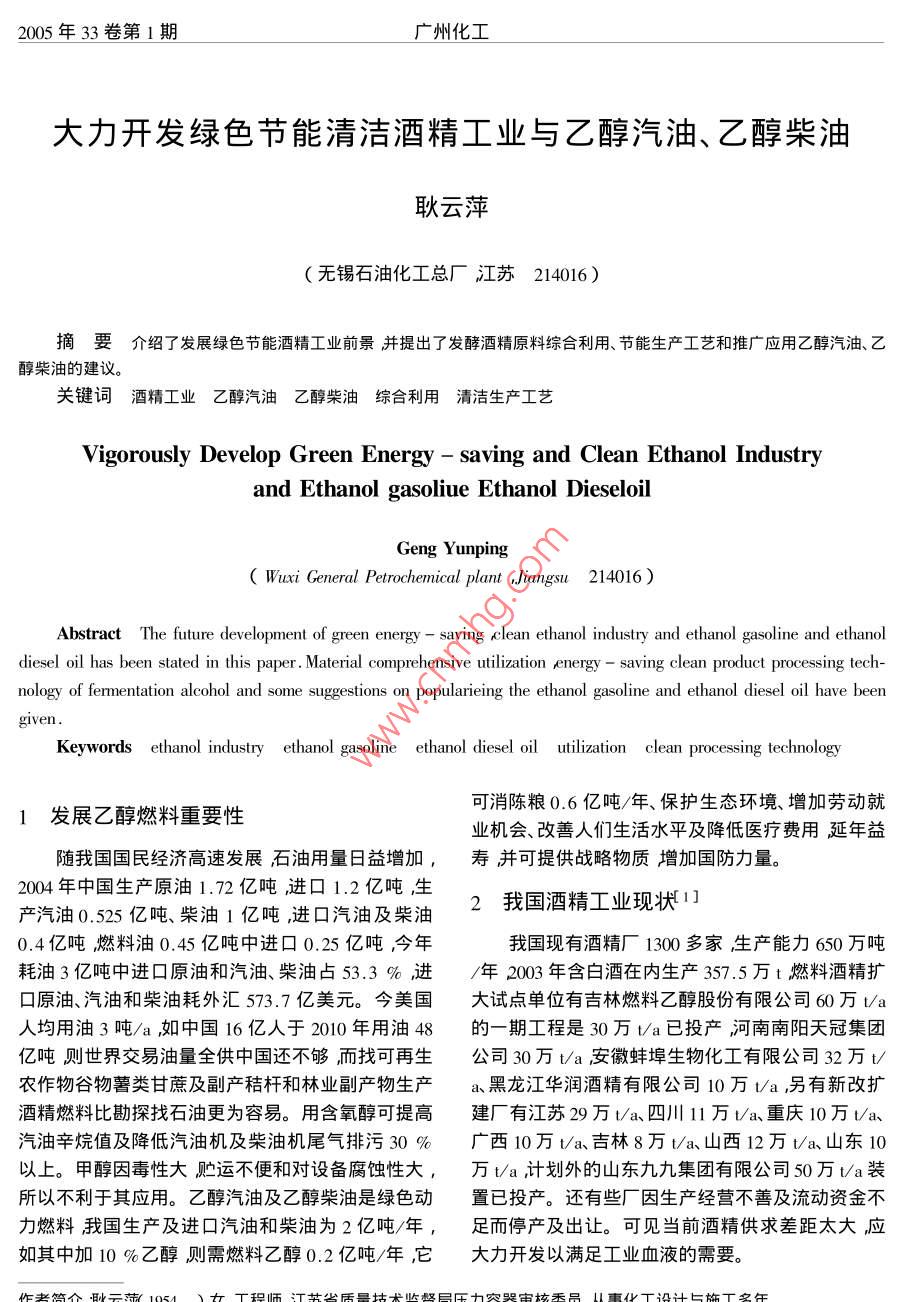 大力开发绿色节能清洁酒精工业与乙醇汽油、乙醇柴油