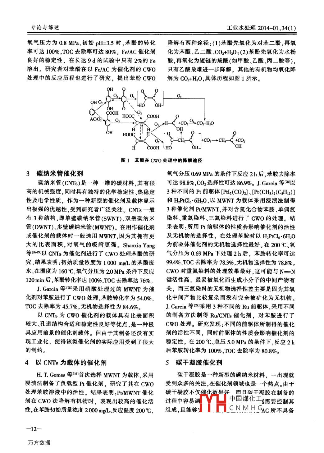 炭材料催化剂在催化湿式氧化中的应用