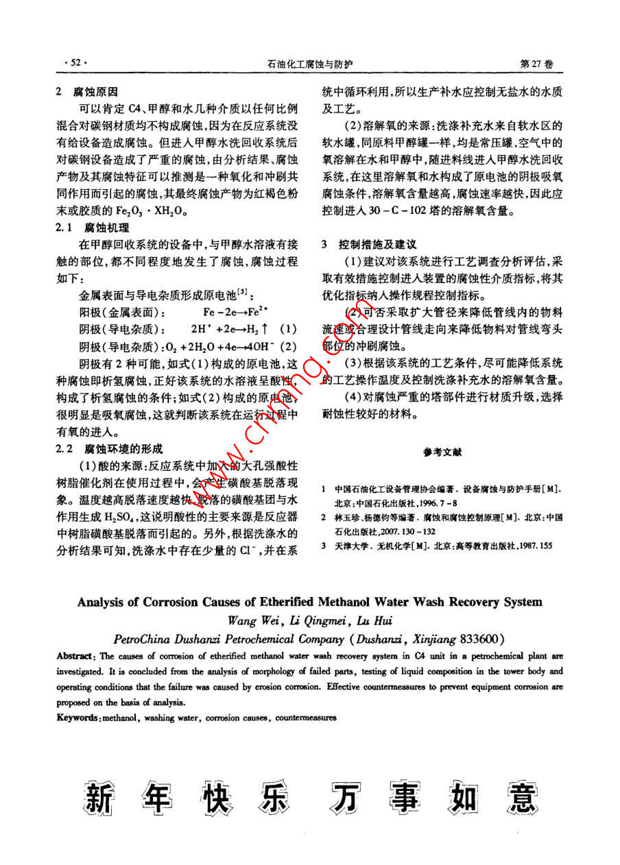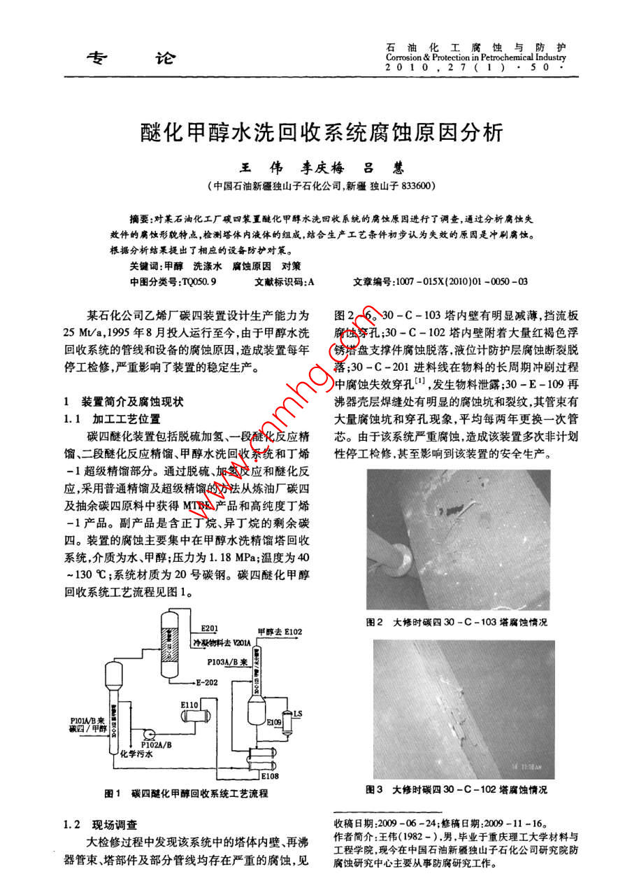 醚化甲醇水洗回收系统腐蚀原因分析