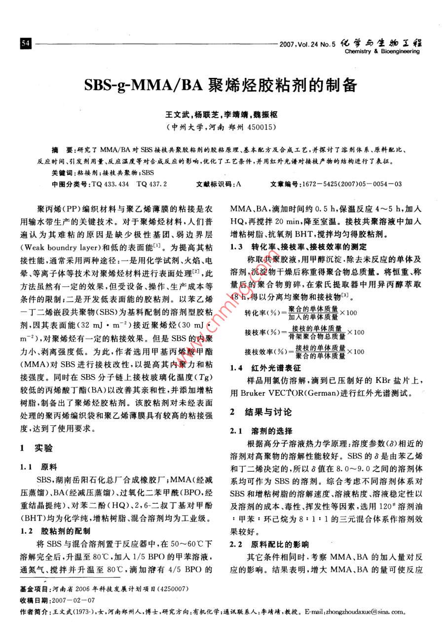 SBS-g-MMA/BA聚烯烃胶粘剂的制备