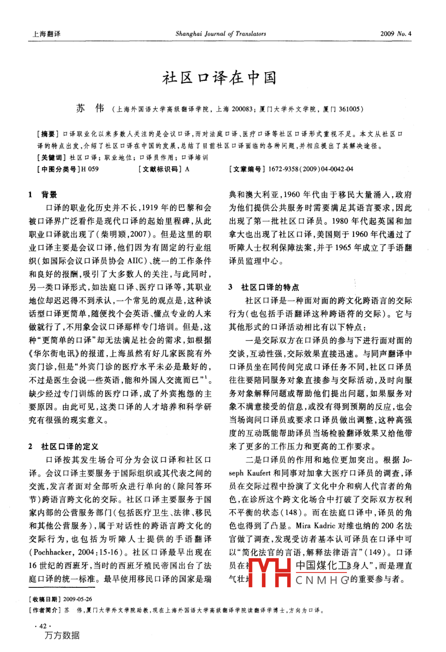 社区口译在中国