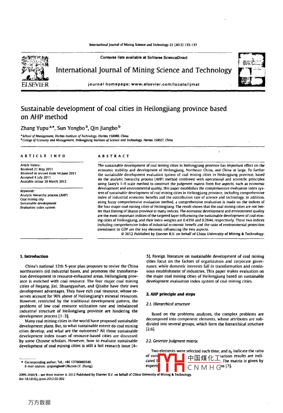 Sustainable development of coal cities in Heilongjiang province based on AHP method
