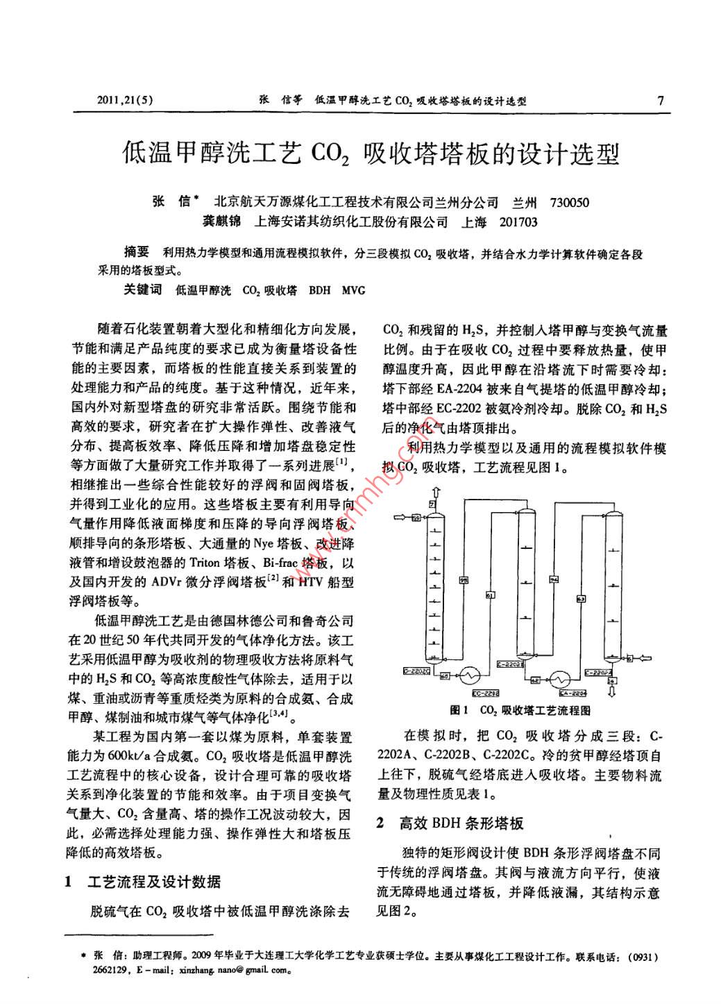 低温甲醇洗工艺CO2吸收塔塔板的设计选型