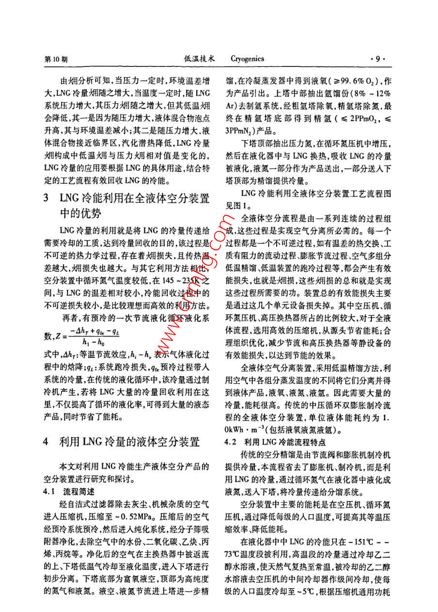 LNG冷能利用的全液体空分