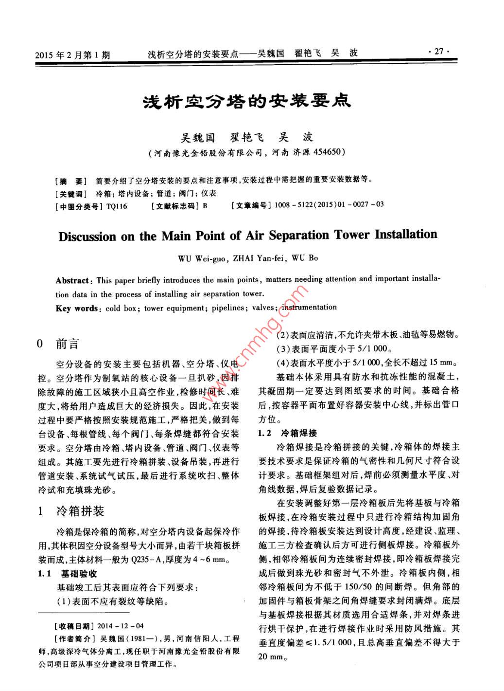 浅析空分塔的安装要点