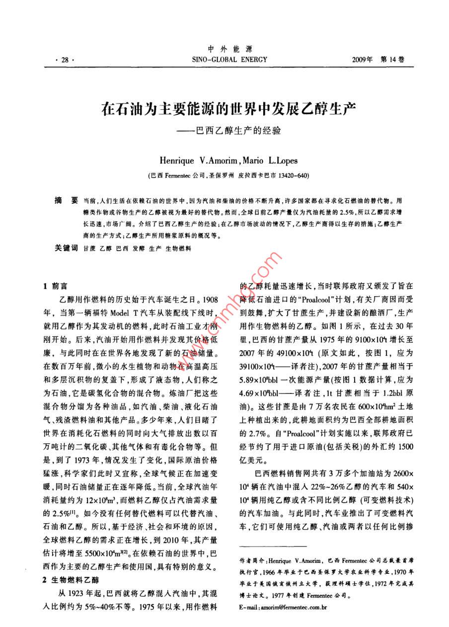在雷竞技世界杯手机登录 为主要能源的世界中发展乙醇生产——巴西乙醇生产的经验