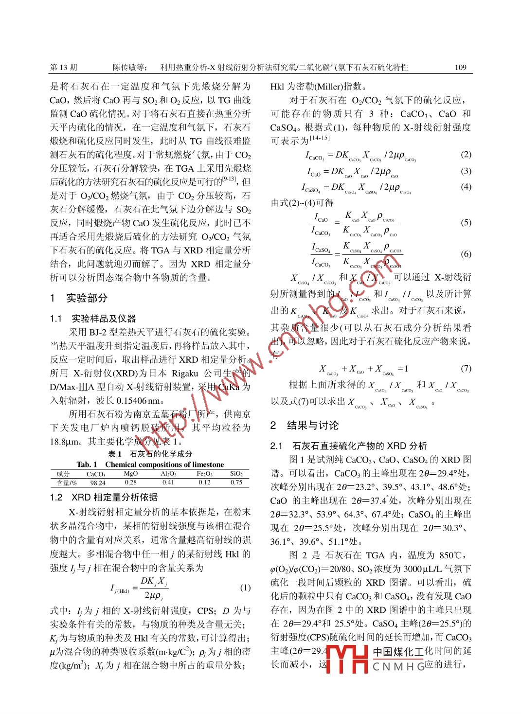 利用热重分析-X射线衍射分析法研究氧/二氧化碳气氛下石灰石硫化特性