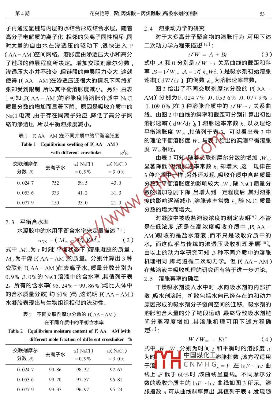 聚(丙烯酸-丙烯酰胺)高吸水剂的溶胀