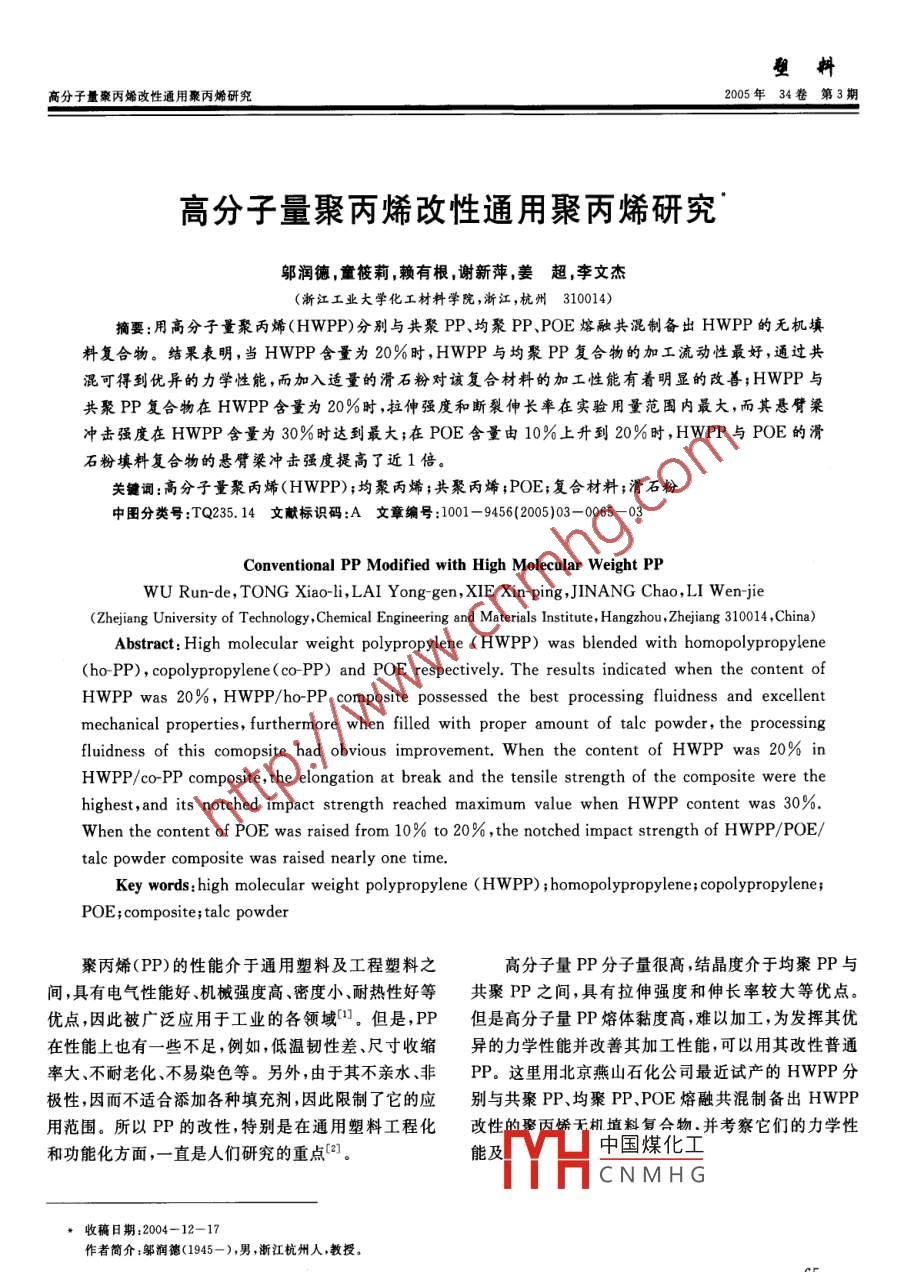 高分子量聚丙烯改性通用聚丙烯研究