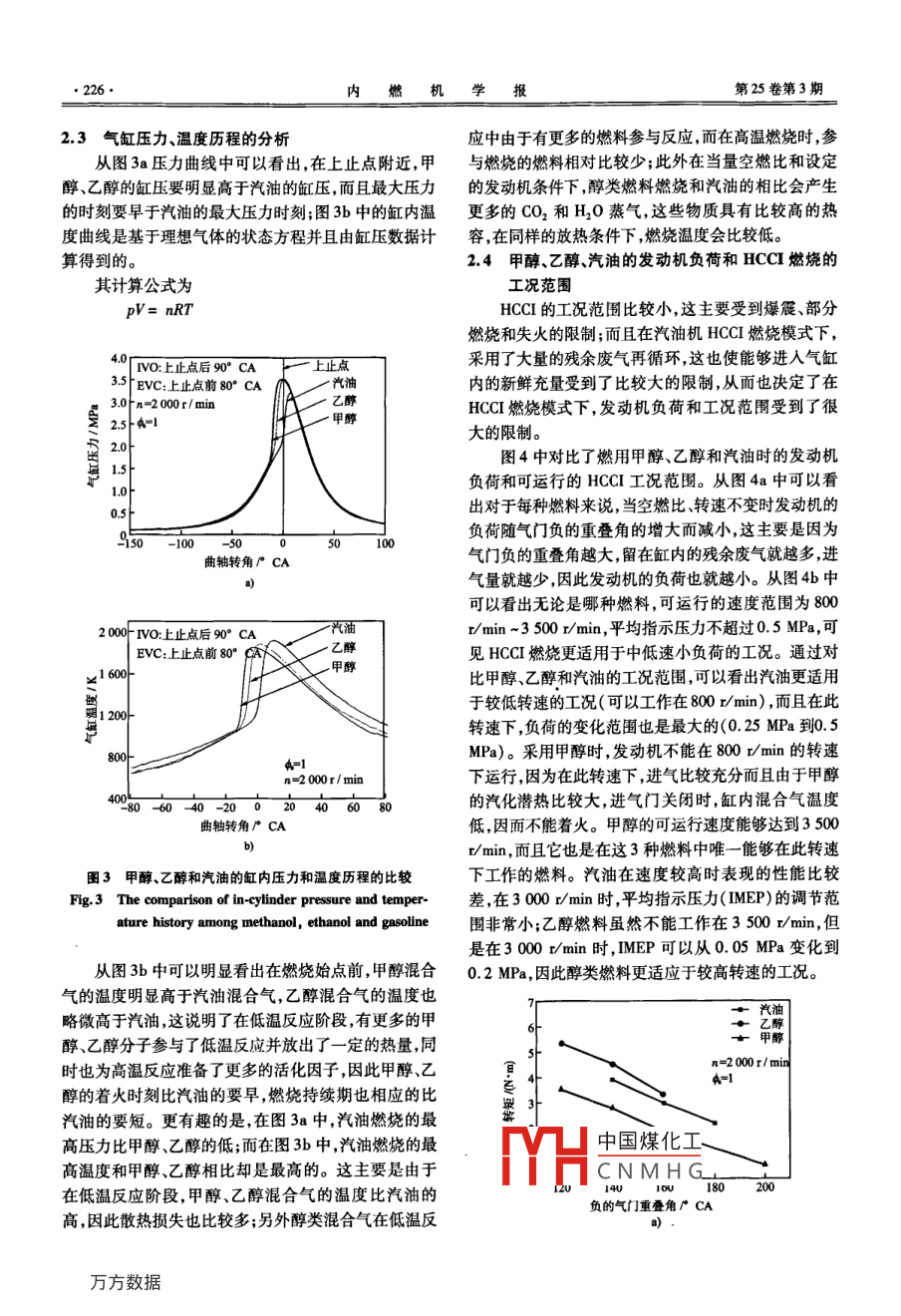 甲醇/乙醇/汽油HCCI燃烧和排放特性对比