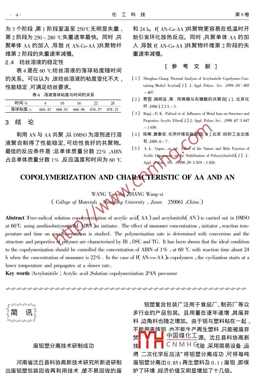 下一条:丙烯酸与丙烯腈感光共聚合反应研究