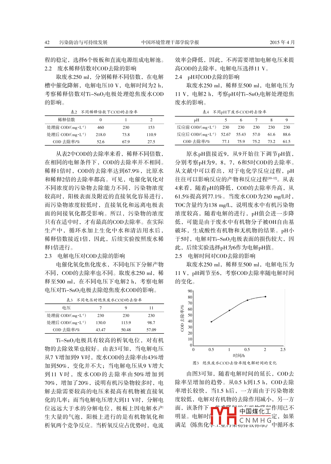 Ti-SnO2电解快速去除熄焦循环水中 COD