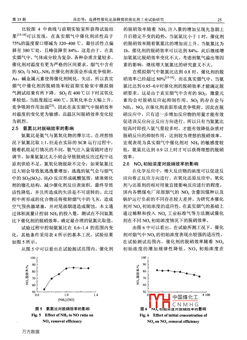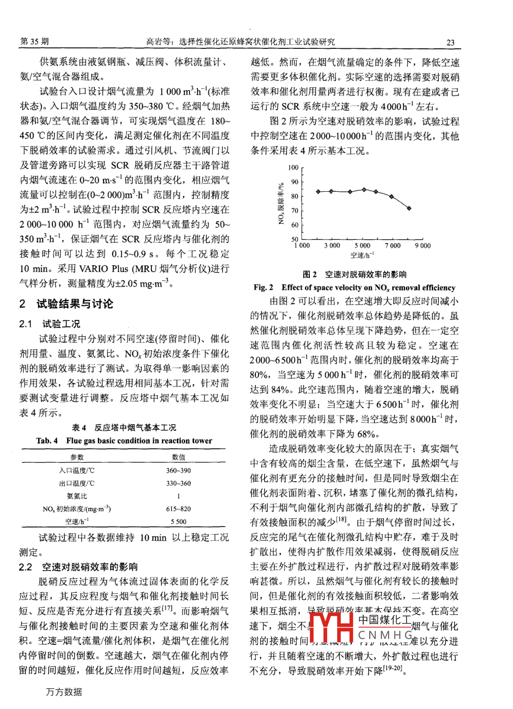 选择性催化还原蜂窝状催化剂工业试验研究
