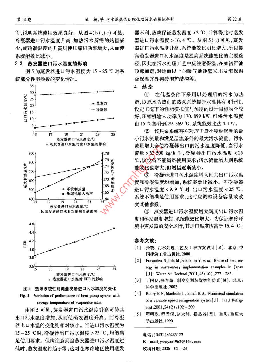 污水源热泵处理低温污水的模拟分析