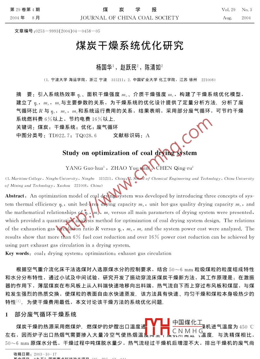 煤炭干燥系统优化研究