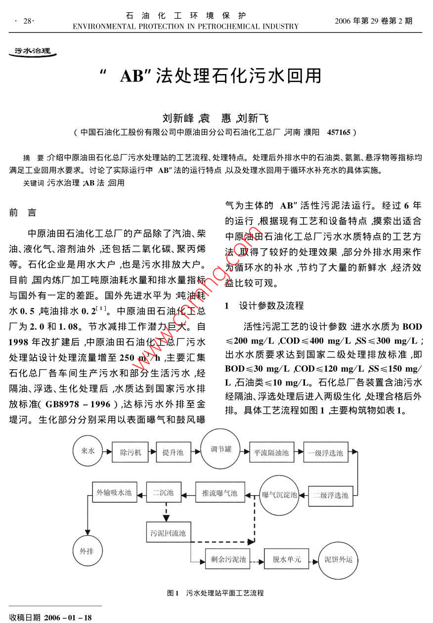 "AB"法处理石化污水回用