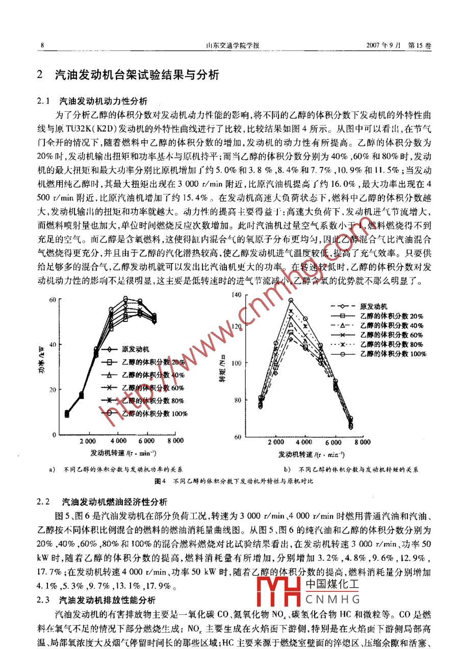 开环控制时乙醇的体积分数对汽油-乙醇混合燃料发动机性能的影响