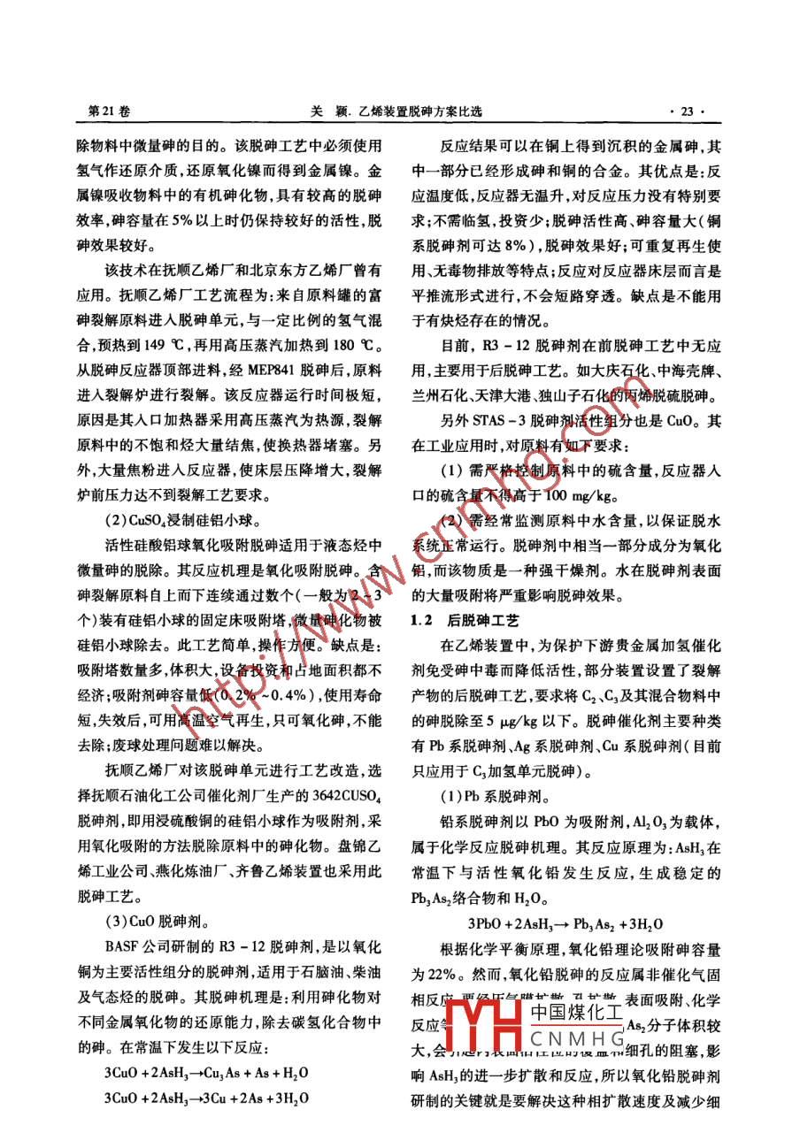 乙烯装置脱砷方案比选