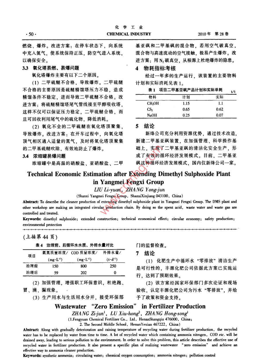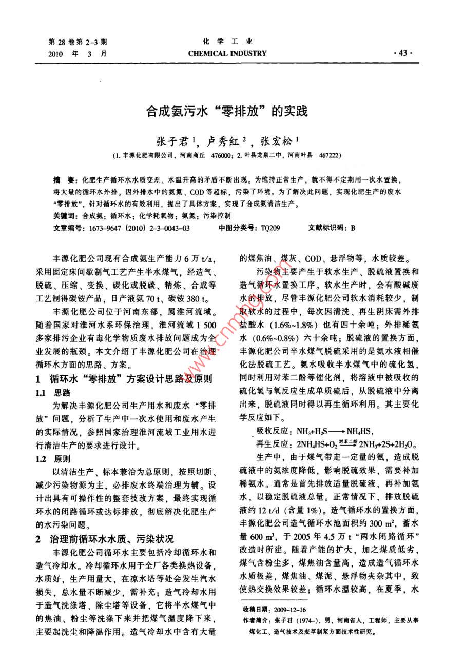 合成氨污水"零排放"的实践