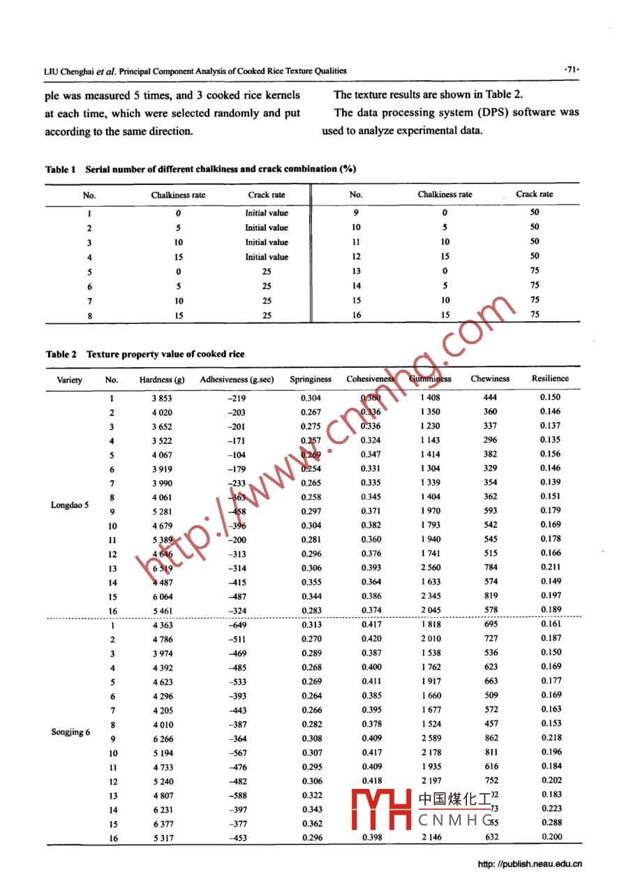 Principal Component Analysis of Cooked Rice Texture Qualities