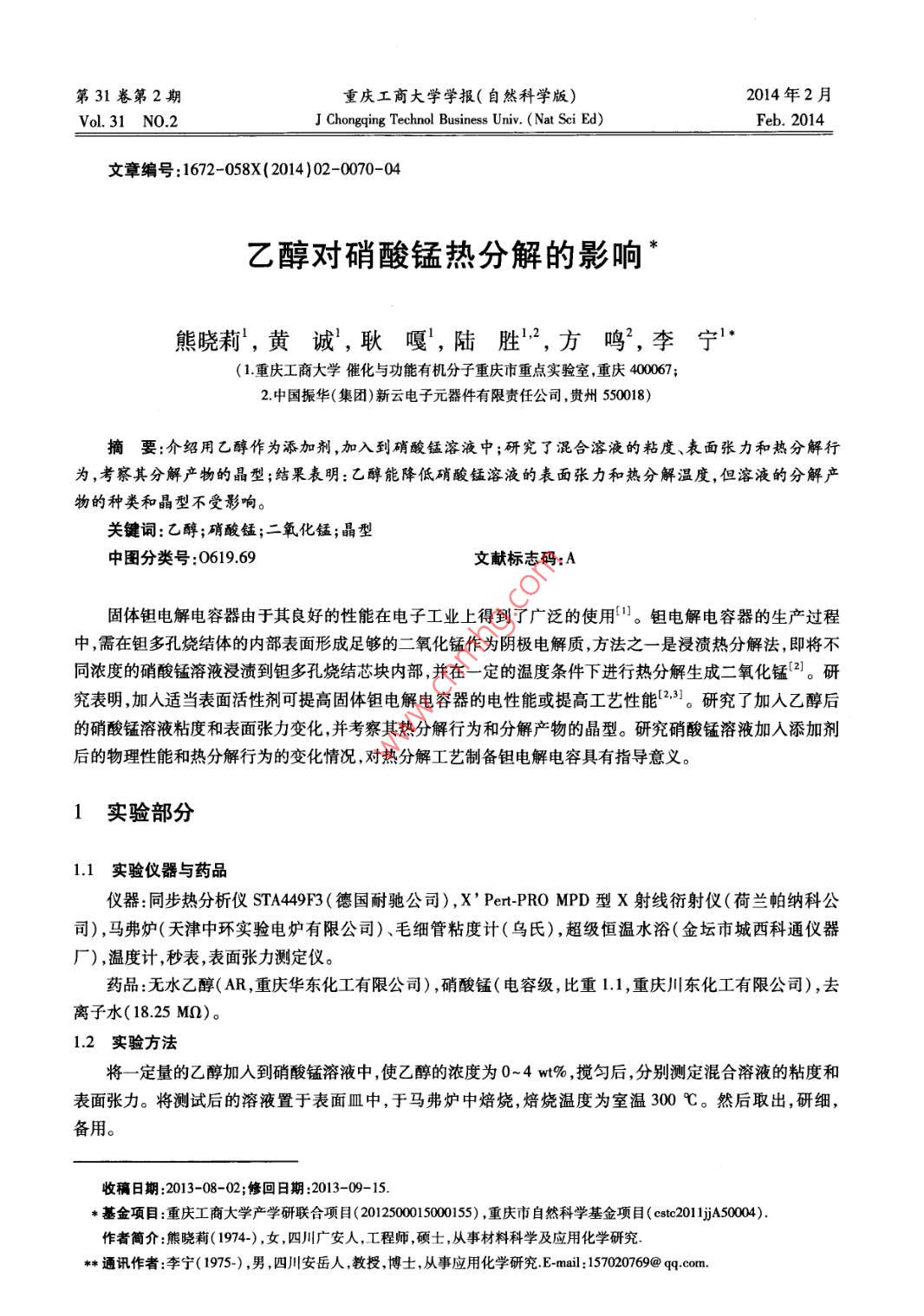 - 作者单位:重庆工商大学催化与功能有机分子重庆市重点实验室,中国振华(集团)新云电子元器件有限责任公司