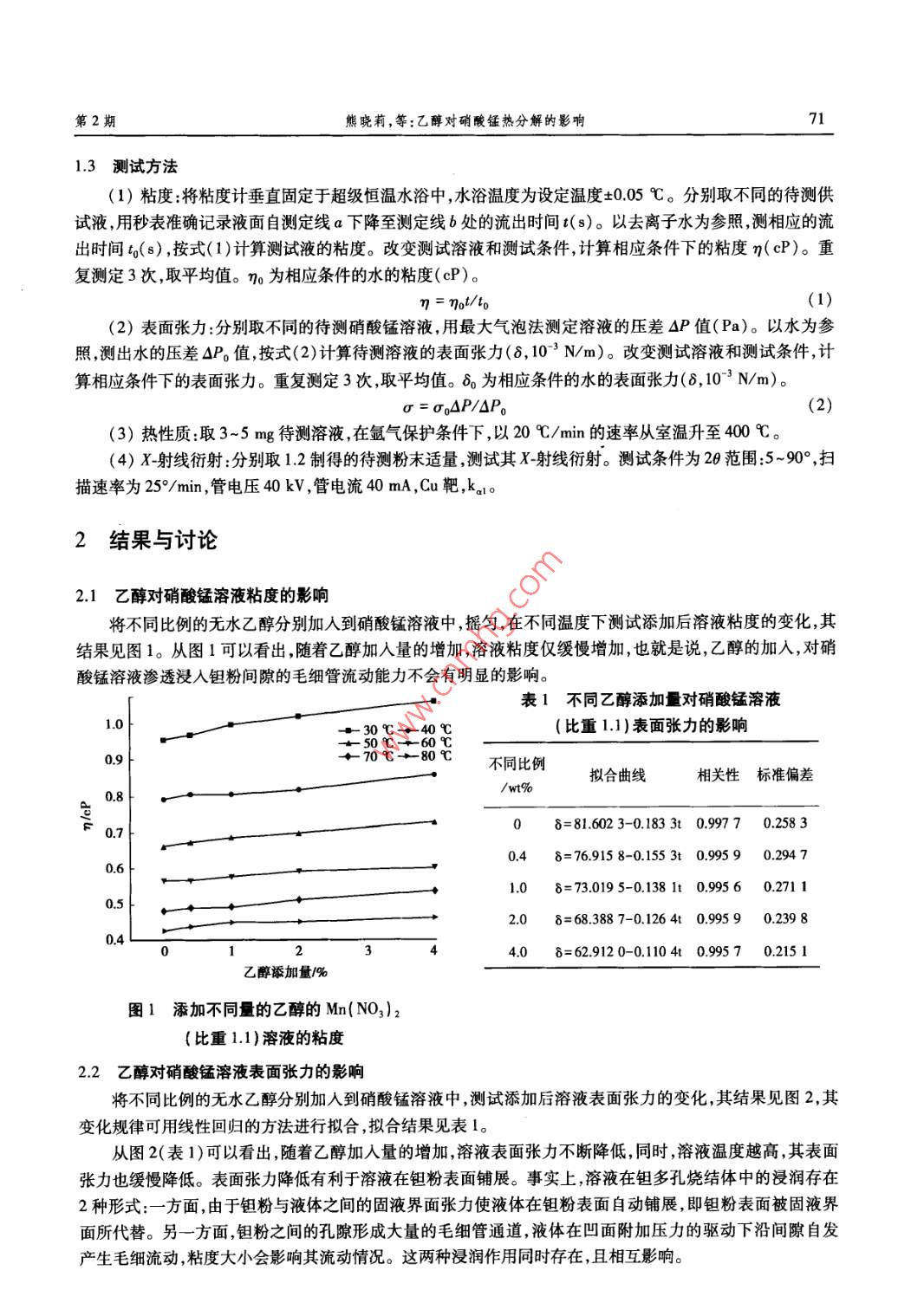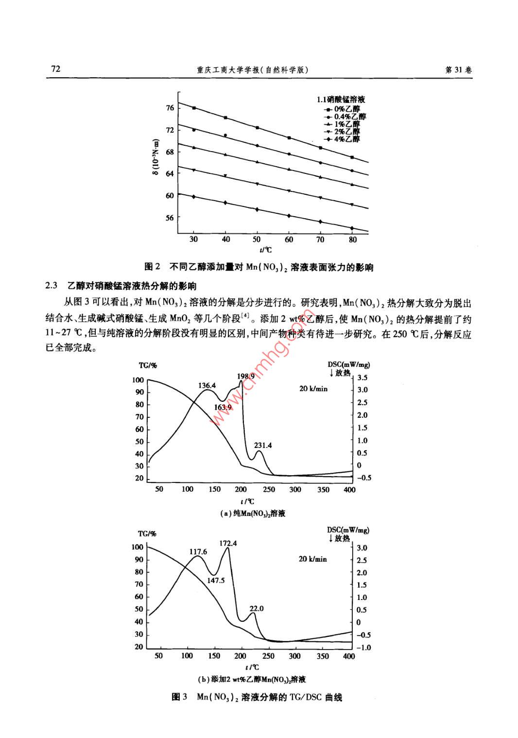 乙醇对硝酸锰热分解的影响