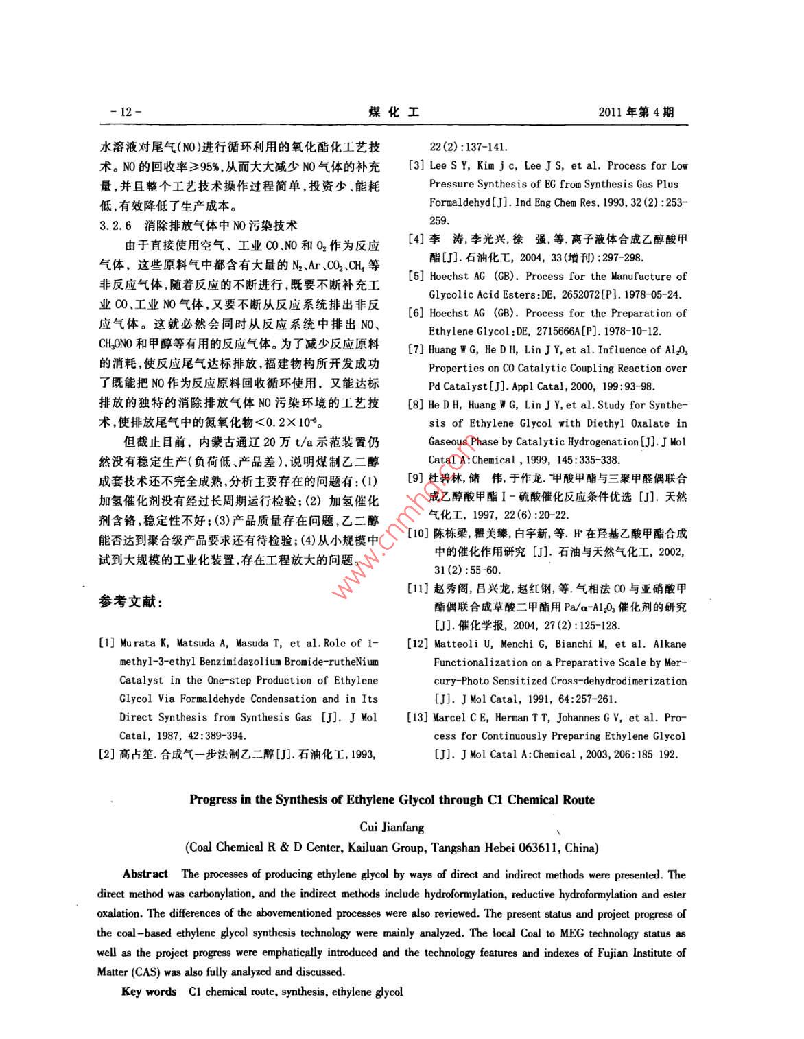 - 期刊名字:煤化工