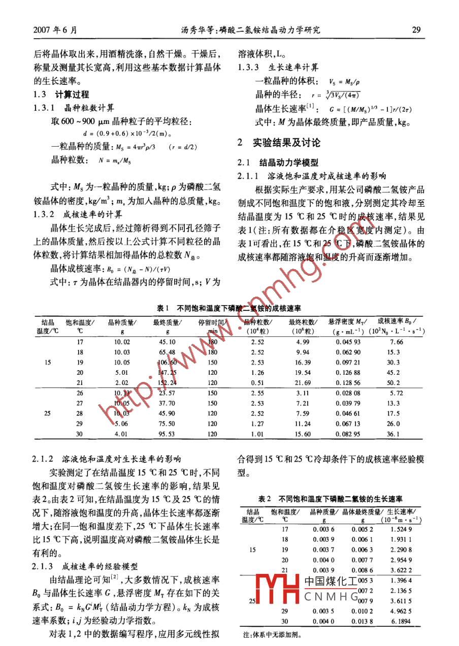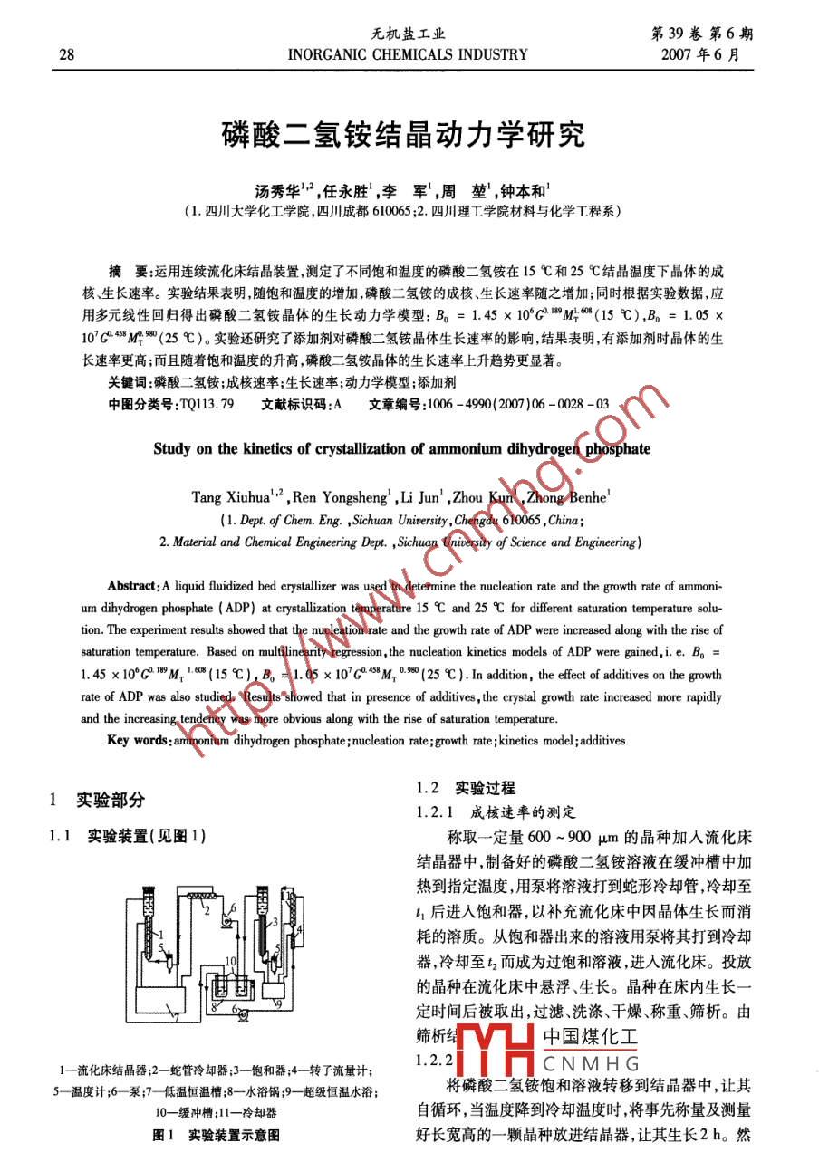 磷酸二氢铵结晶动力学研究