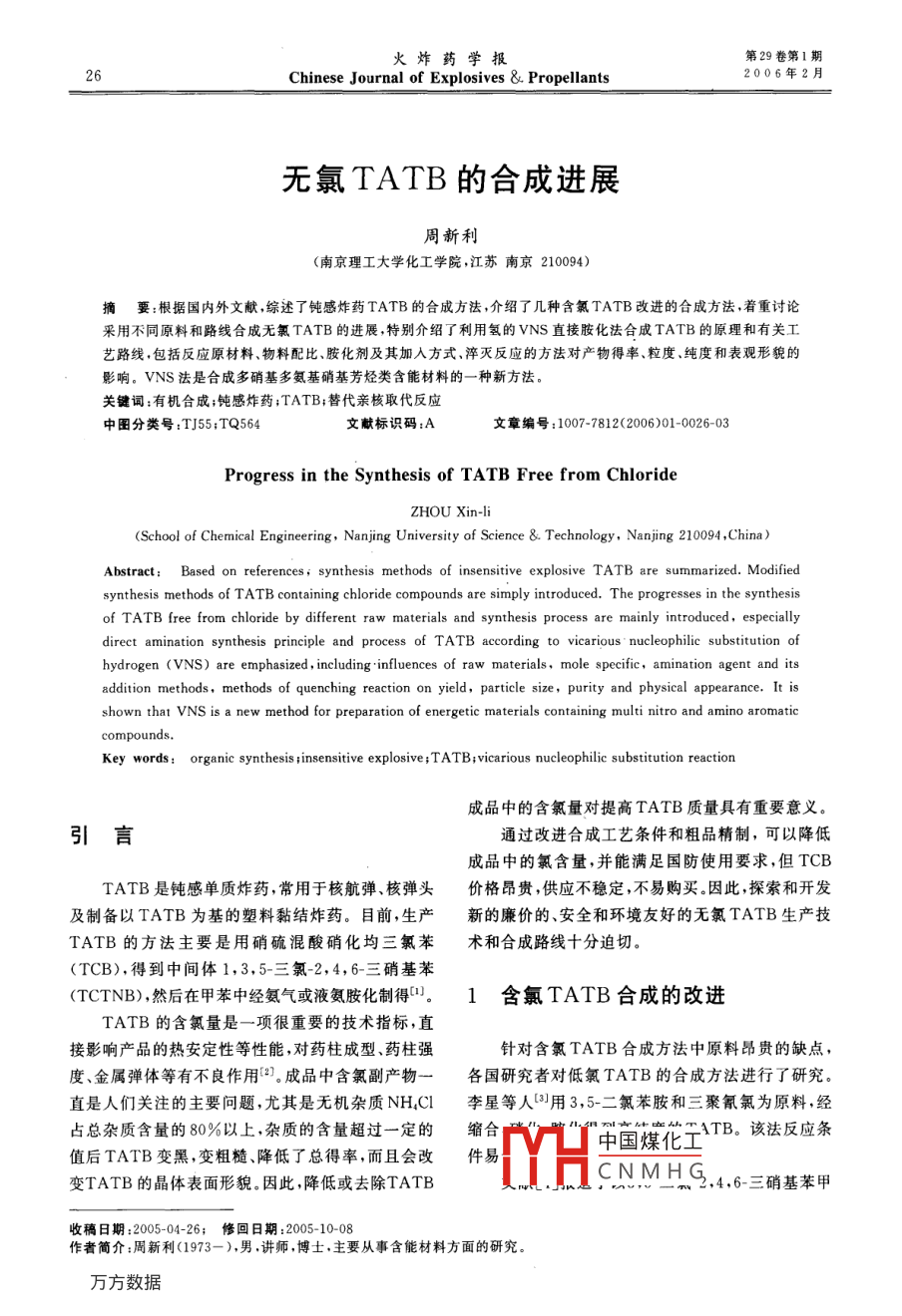 无氯TATB的合成进展