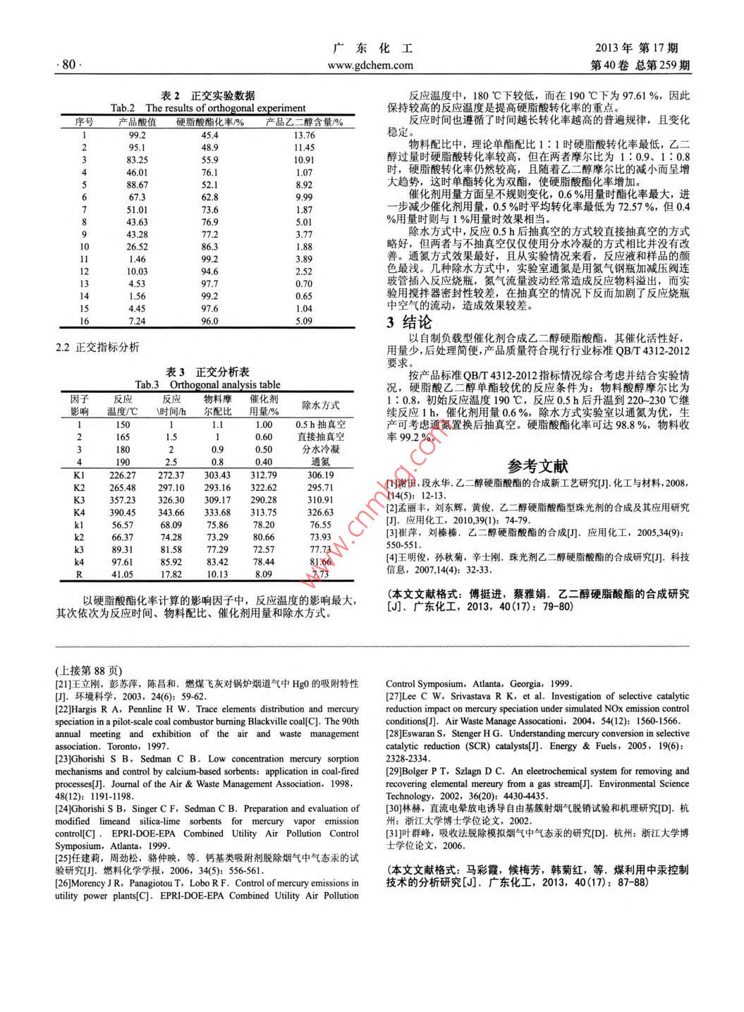 乙二醇硬脂酸酯的合成研究