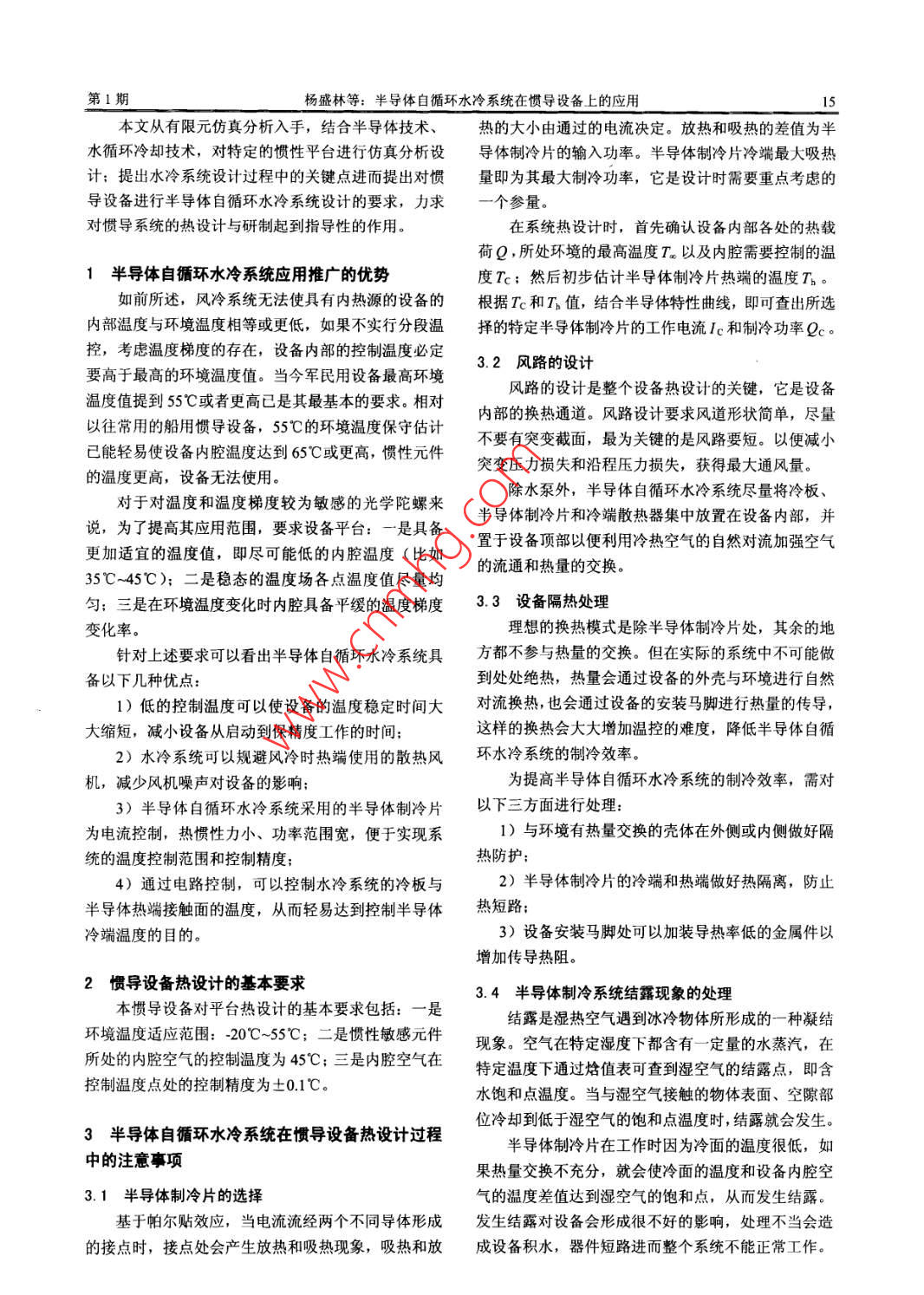 半导体自循环水冷系统在惯导设备上的应用