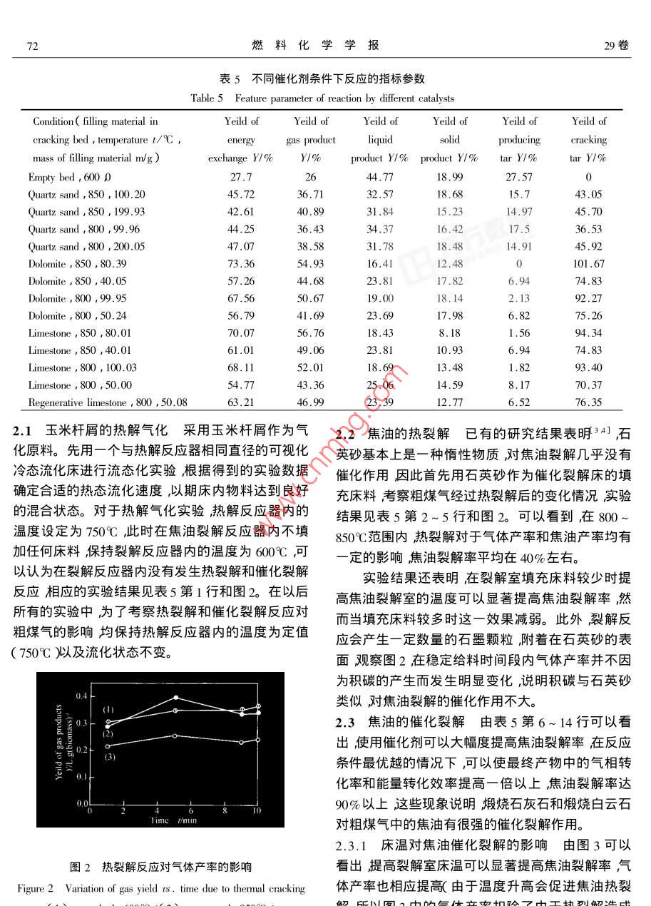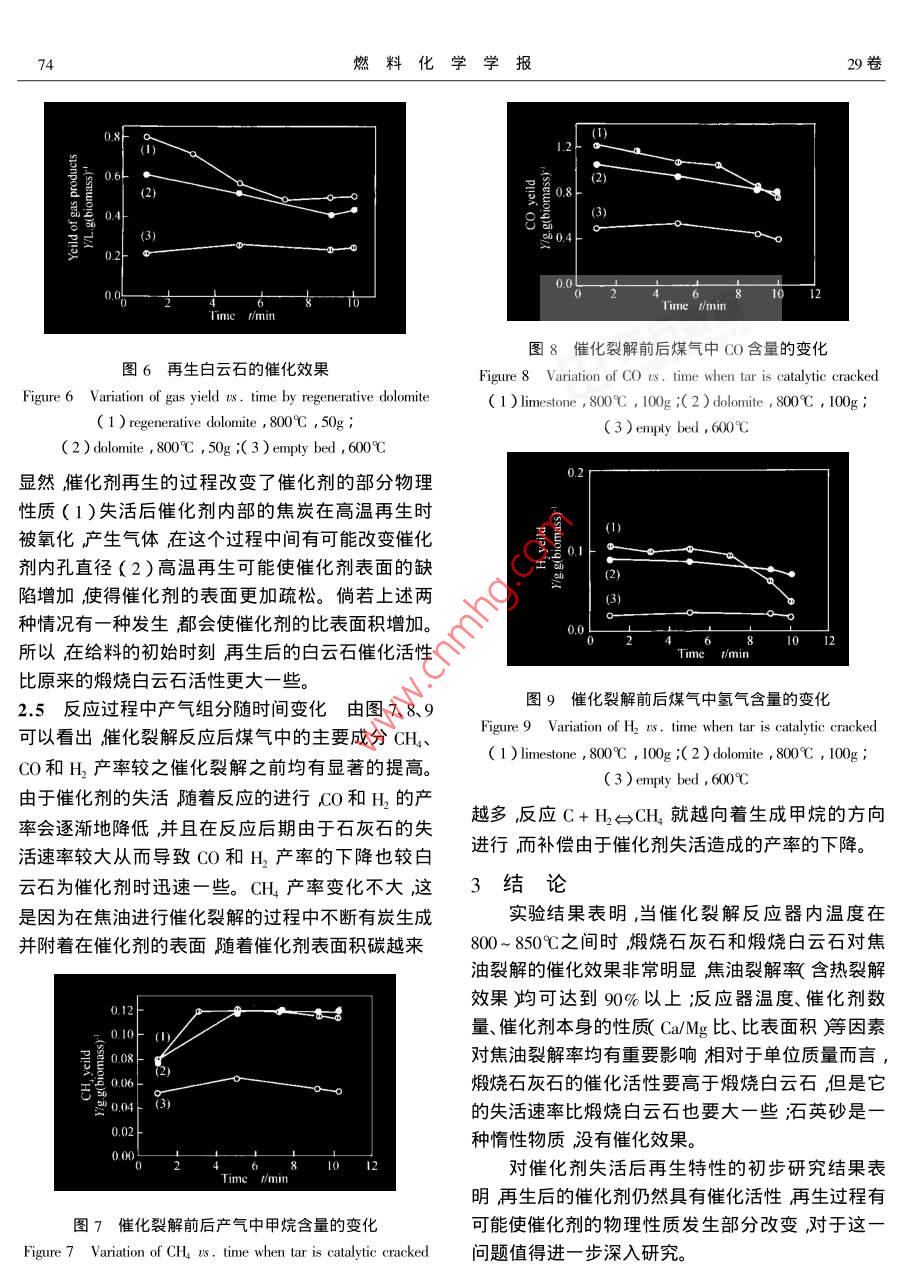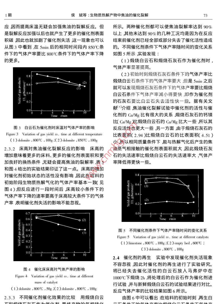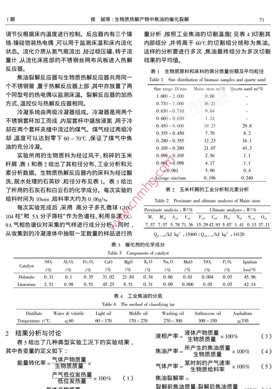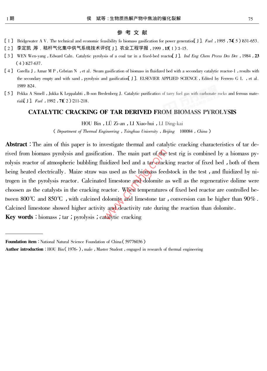 生物质热解产物中焦油的催化裂解