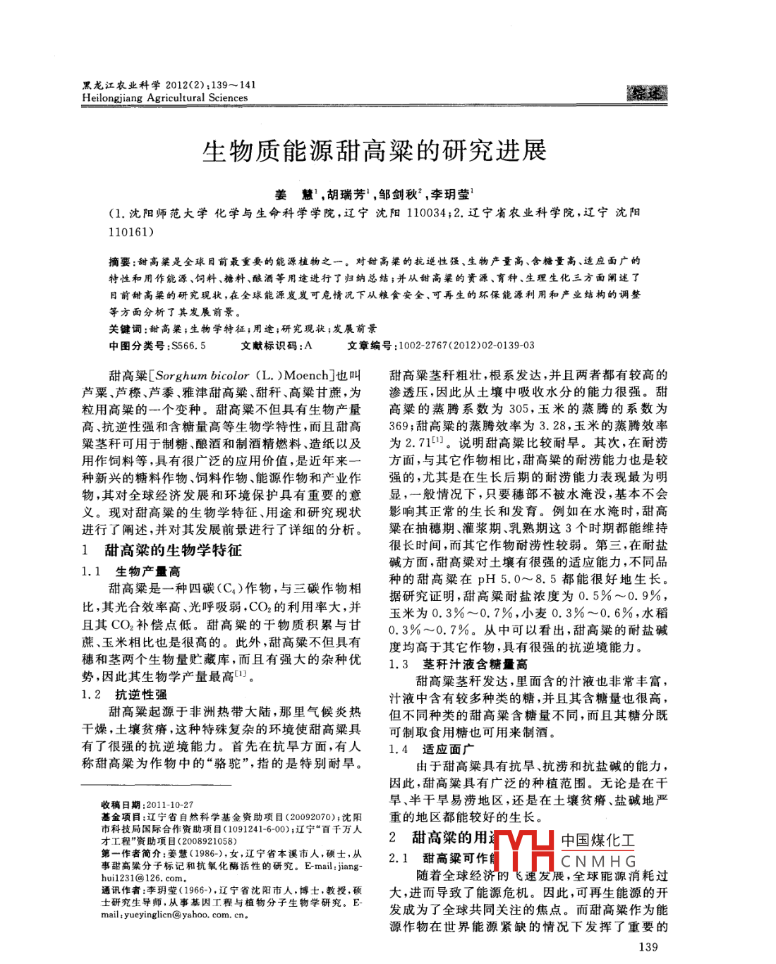 - 作者单位:沈阳师范大学化学与生命科学学院,辽宁省农业科学院