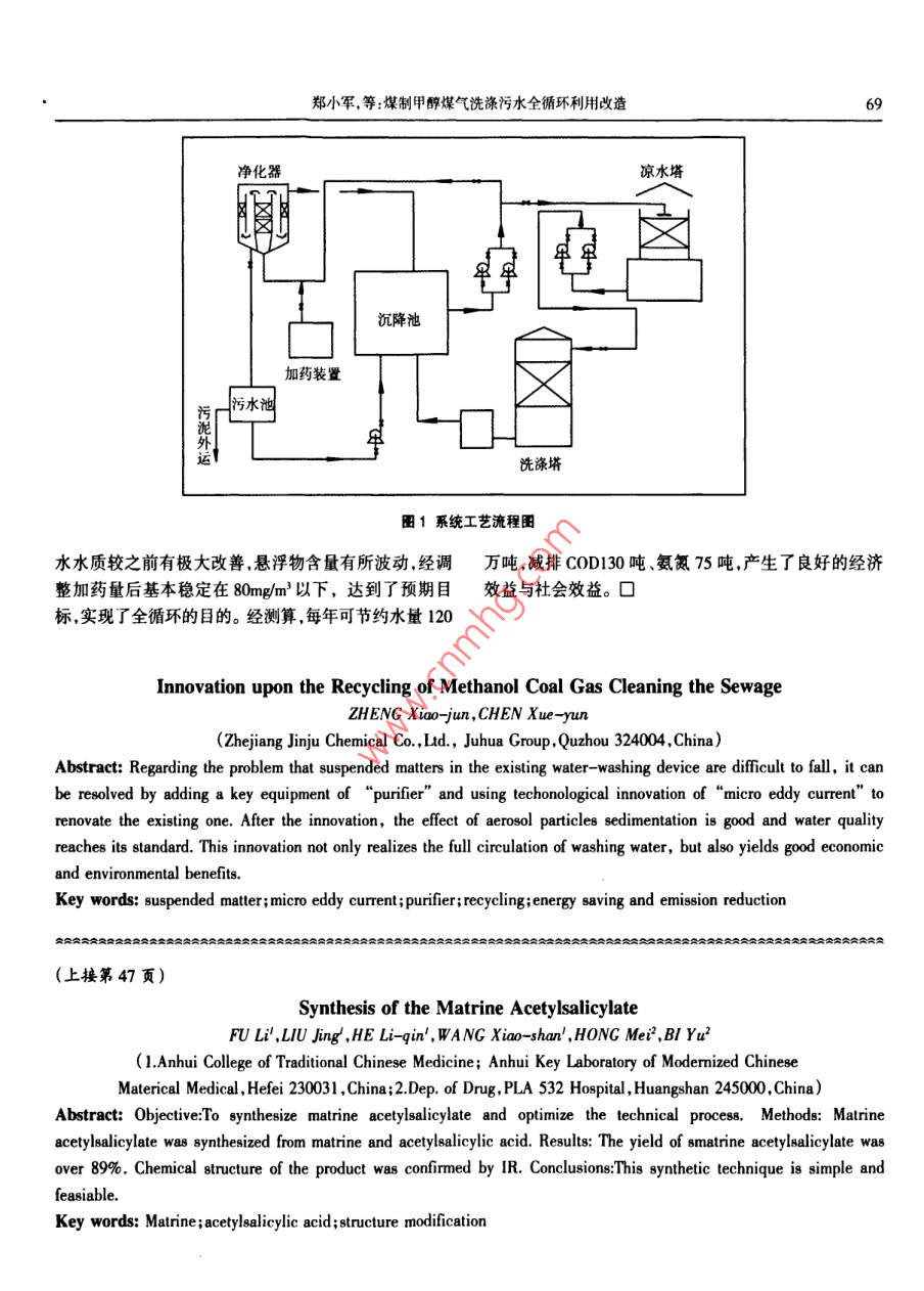 煤制甲醇煤气洗涤污水全循环利用改造