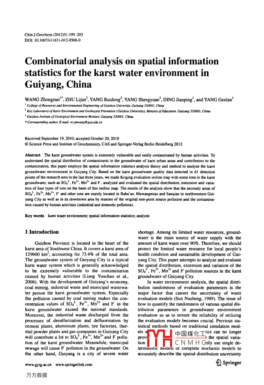 Combinatorial analysis on spatial information statistics for the karst water environment in Guiyang,