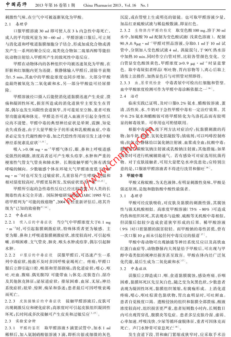 甲醇、甲醛、甲酸中毒救治