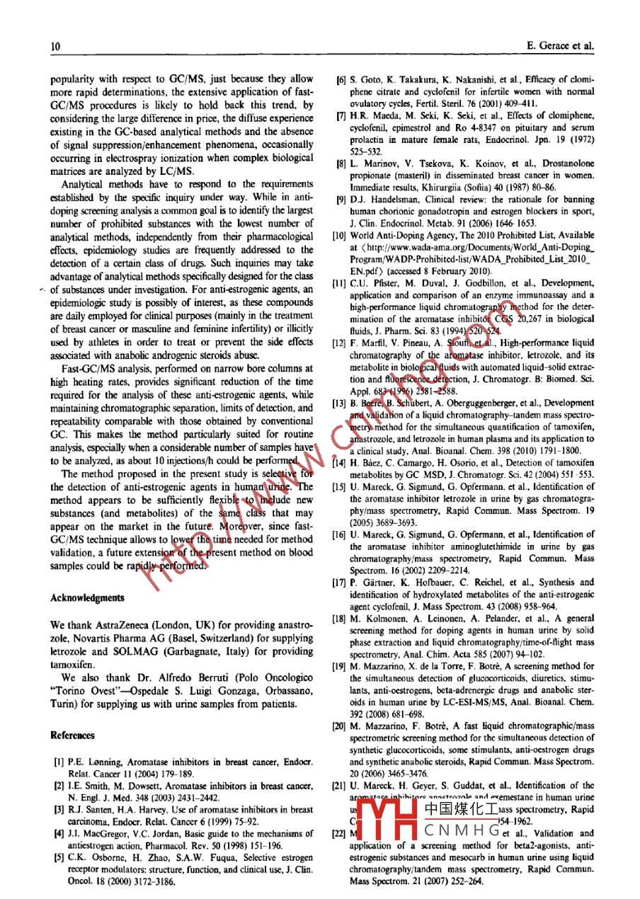 Rapid determination of anti-estrogens by gas chromatography/mass spectrometry in urine:Method valida