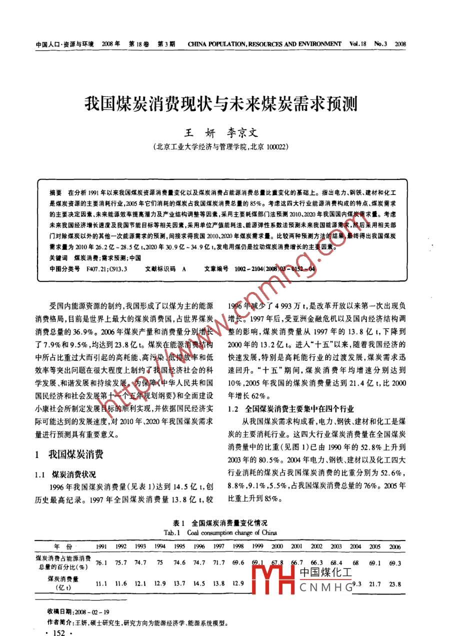 我国煤炭消费现状与未来煤炭需求预测