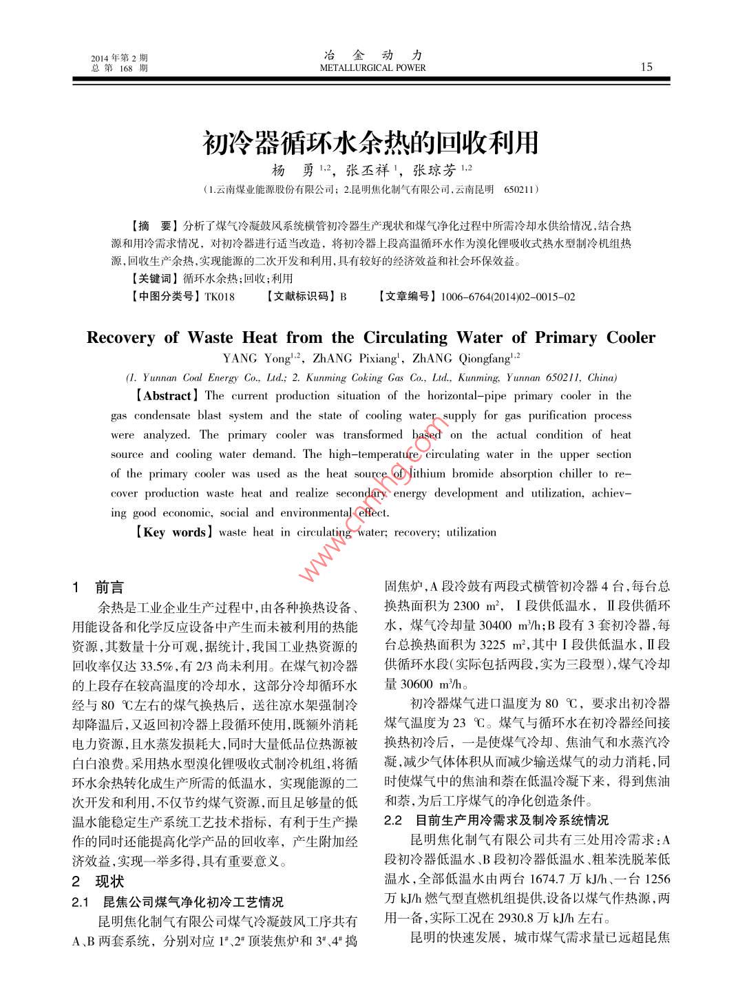 - 期刊名字:冶金动力