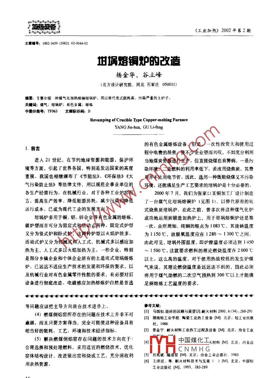 坩埚熔铜炉的改造