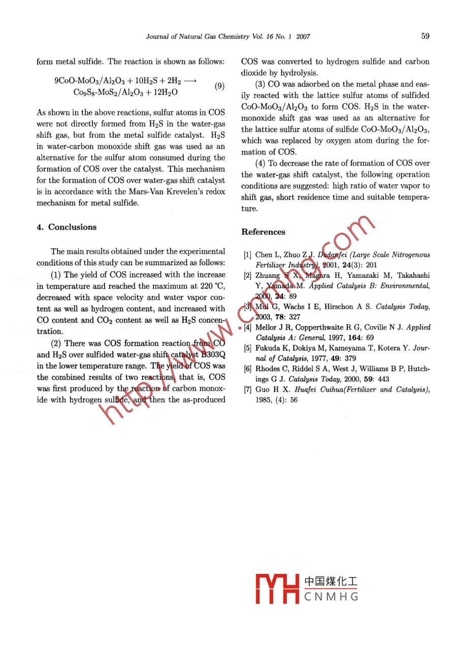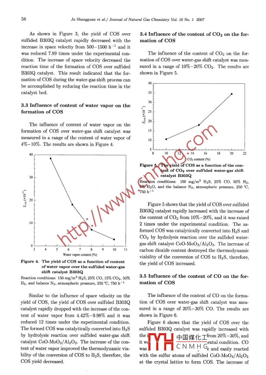 Influence of Gas Components on the Formation of Carbonyl Sulfide over Water-Gas Shift Catalyst B303Q