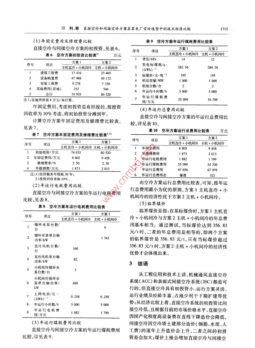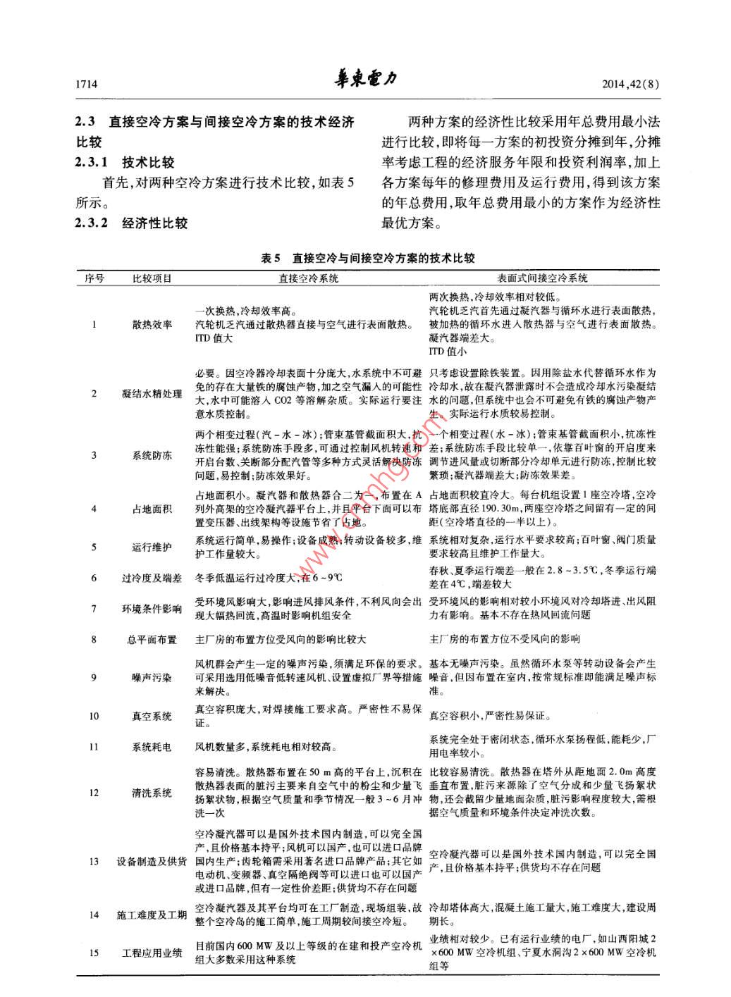 直接空冷和间接空冷方案在某电厂空冷选型中的技术经济比较