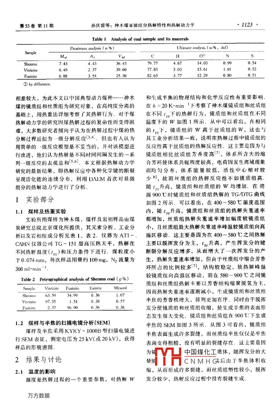 神木煤显微组分热解特性和热解动力学
