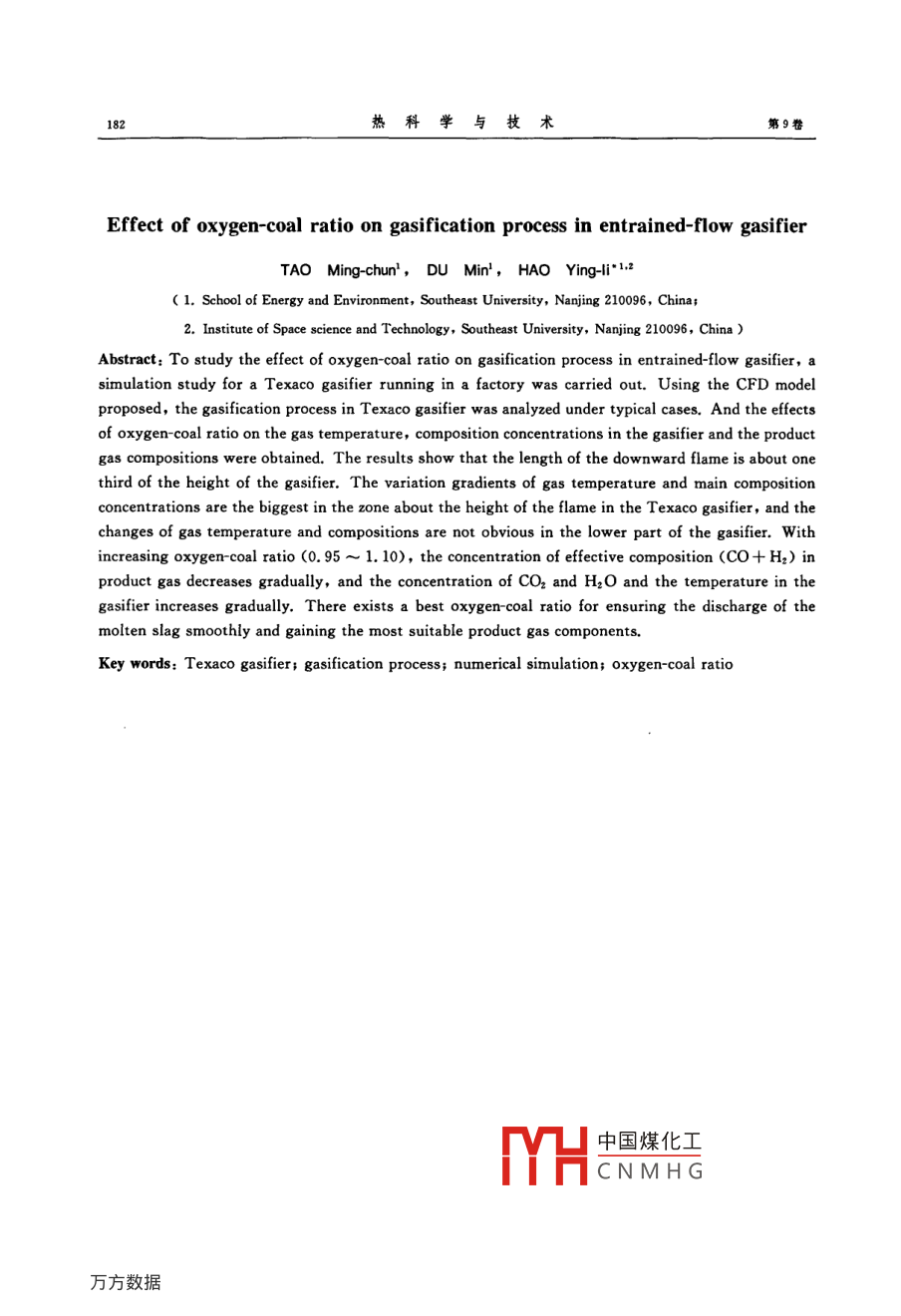 氧煤比对气流床煤气化过程的影响