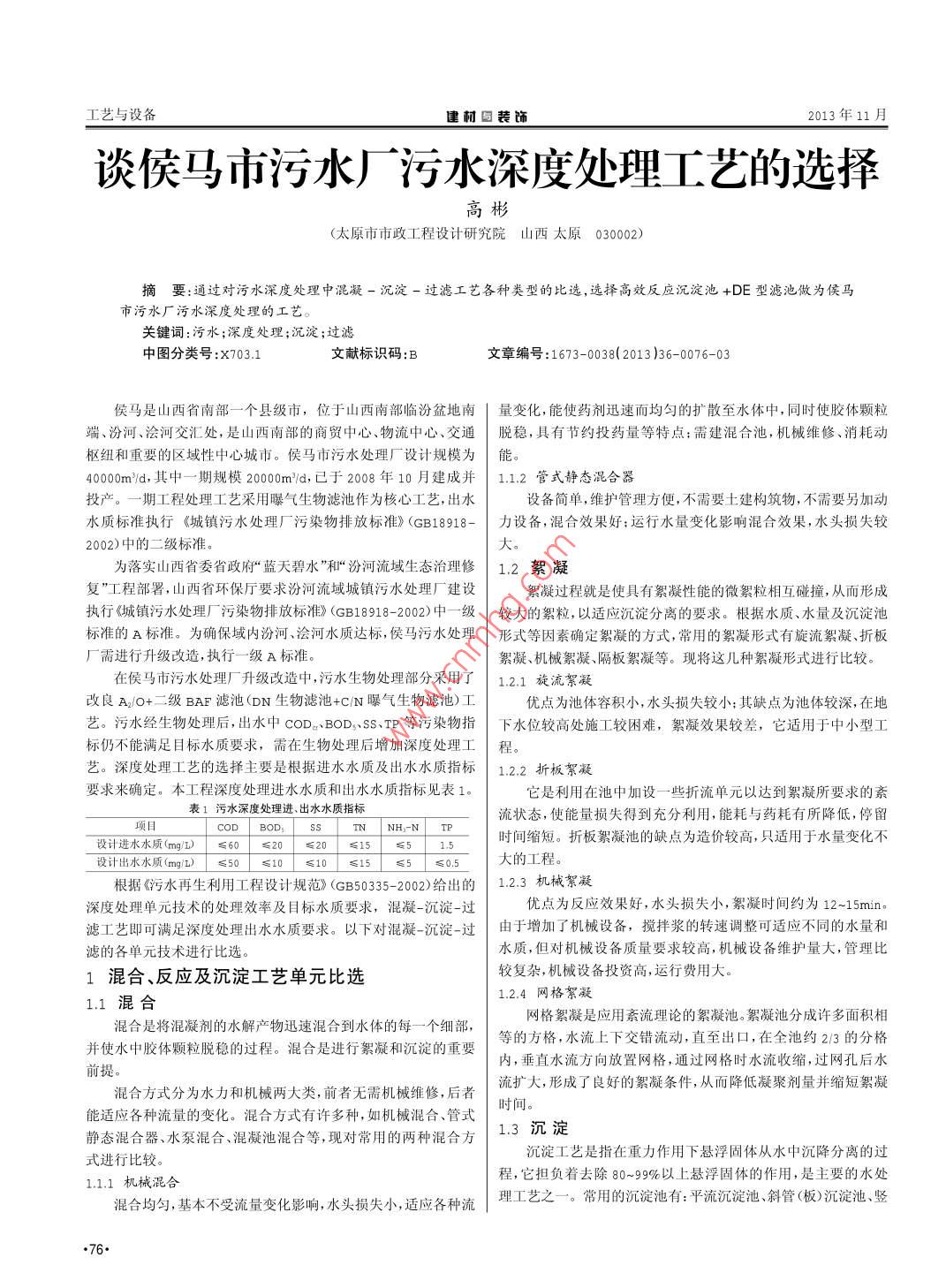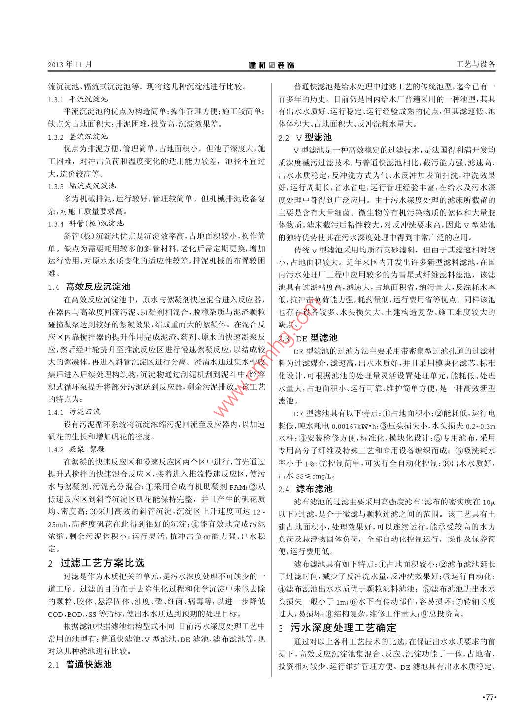 谈侯马市污水厂污水深度处理工艺的选择