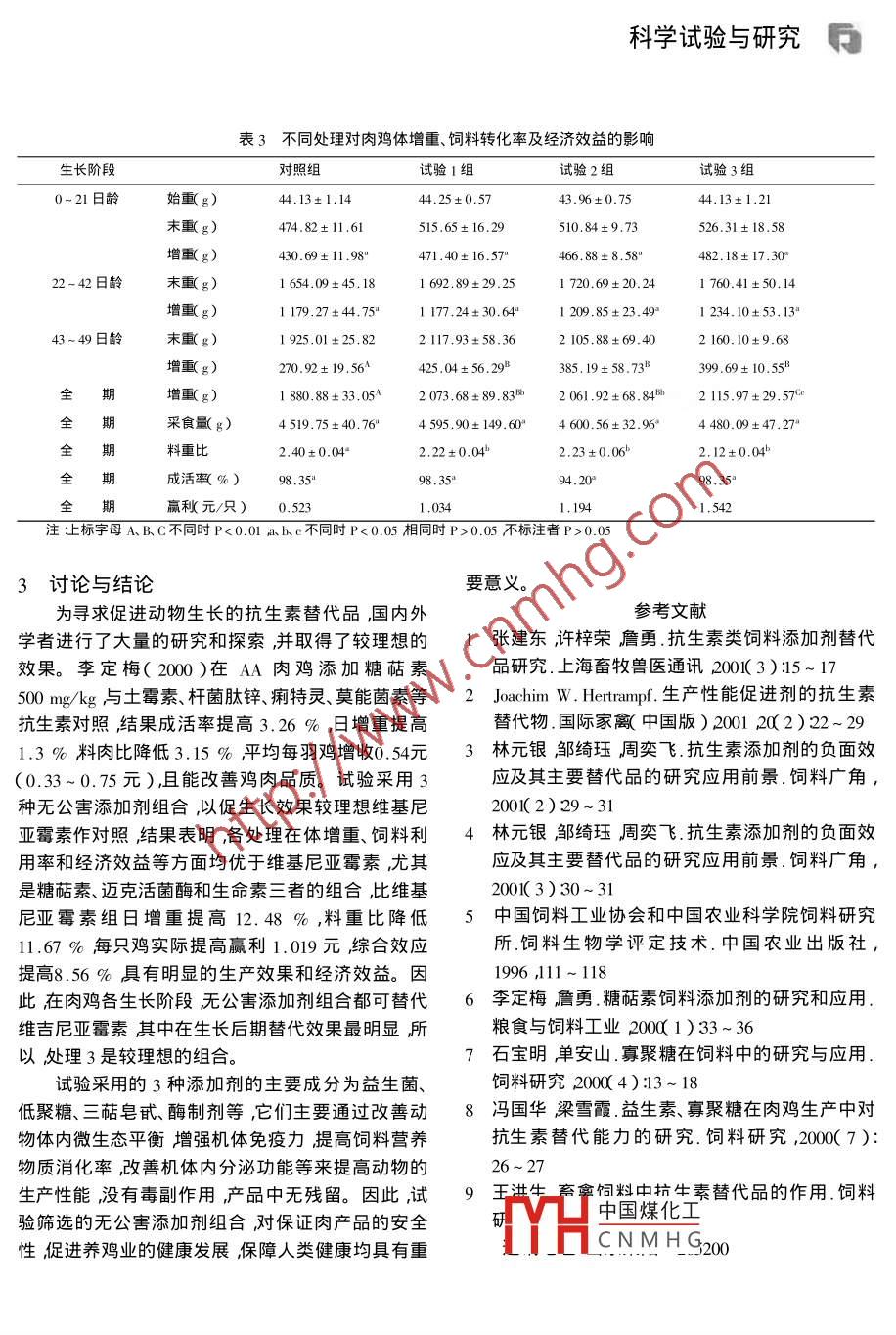 无公害添加剂组合对肉仔鸡生产性能的影响