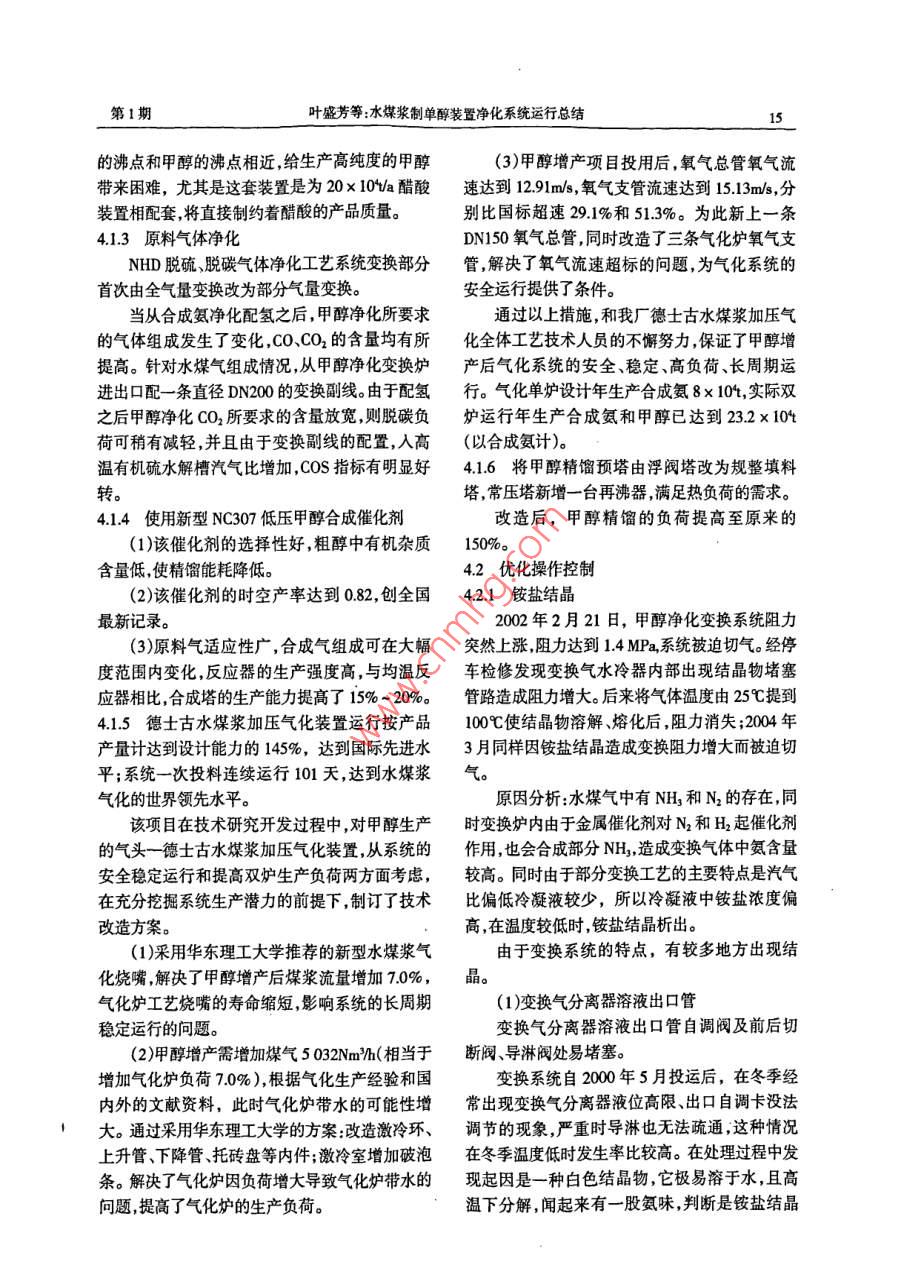 水煤浆制单醇装置净化系统运行总结